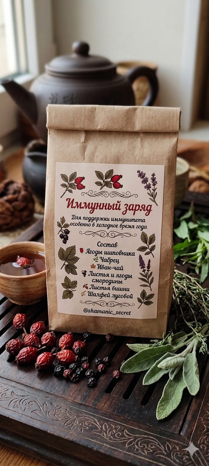 Иммунный заряд — согревающий травяной чай для поддержки организма, особенно в холодное время года 🍵❄️