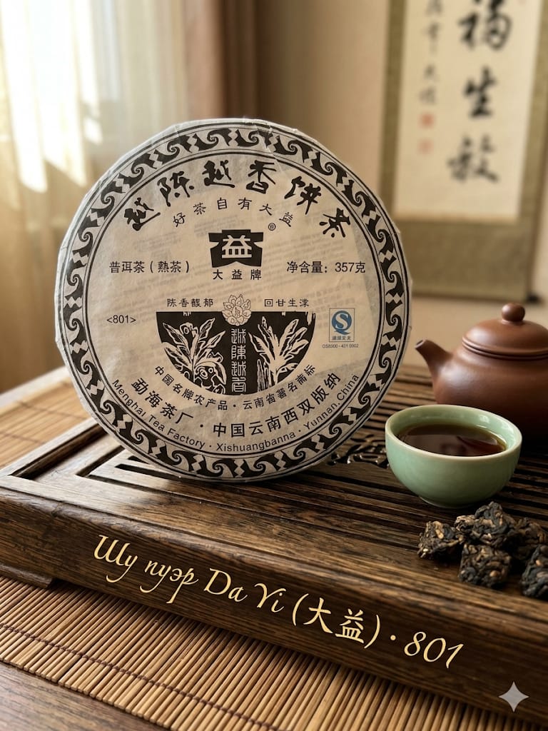 Это шу пуэр от Chensheng Hao — очень уважаемого завода, который делает ставку на качество сырья и чистую ферментацию.